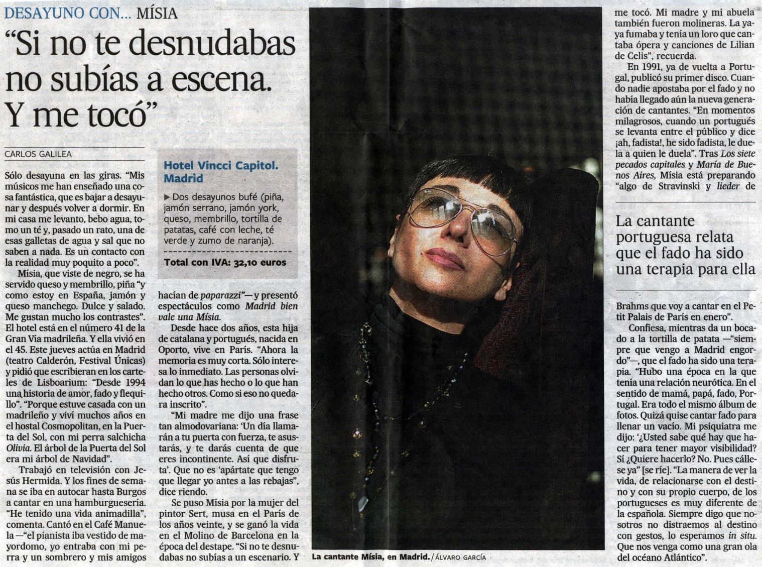 ¡Como no! tenía que ser "El País", una vez más, a hablar de algo tan vinculado a Portugal, como la gran cantante y excelente fadista que es Mísia.
