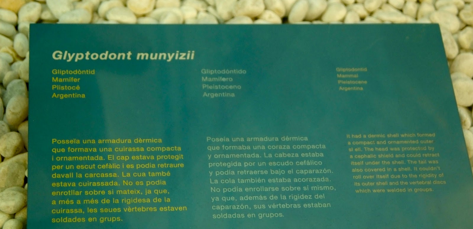 Magnífico paseo por la prehistoria, he visto ejemplares de Argentina que es muy rico en estos restos óseos que nos ayudan a entender la historia del mundo.
