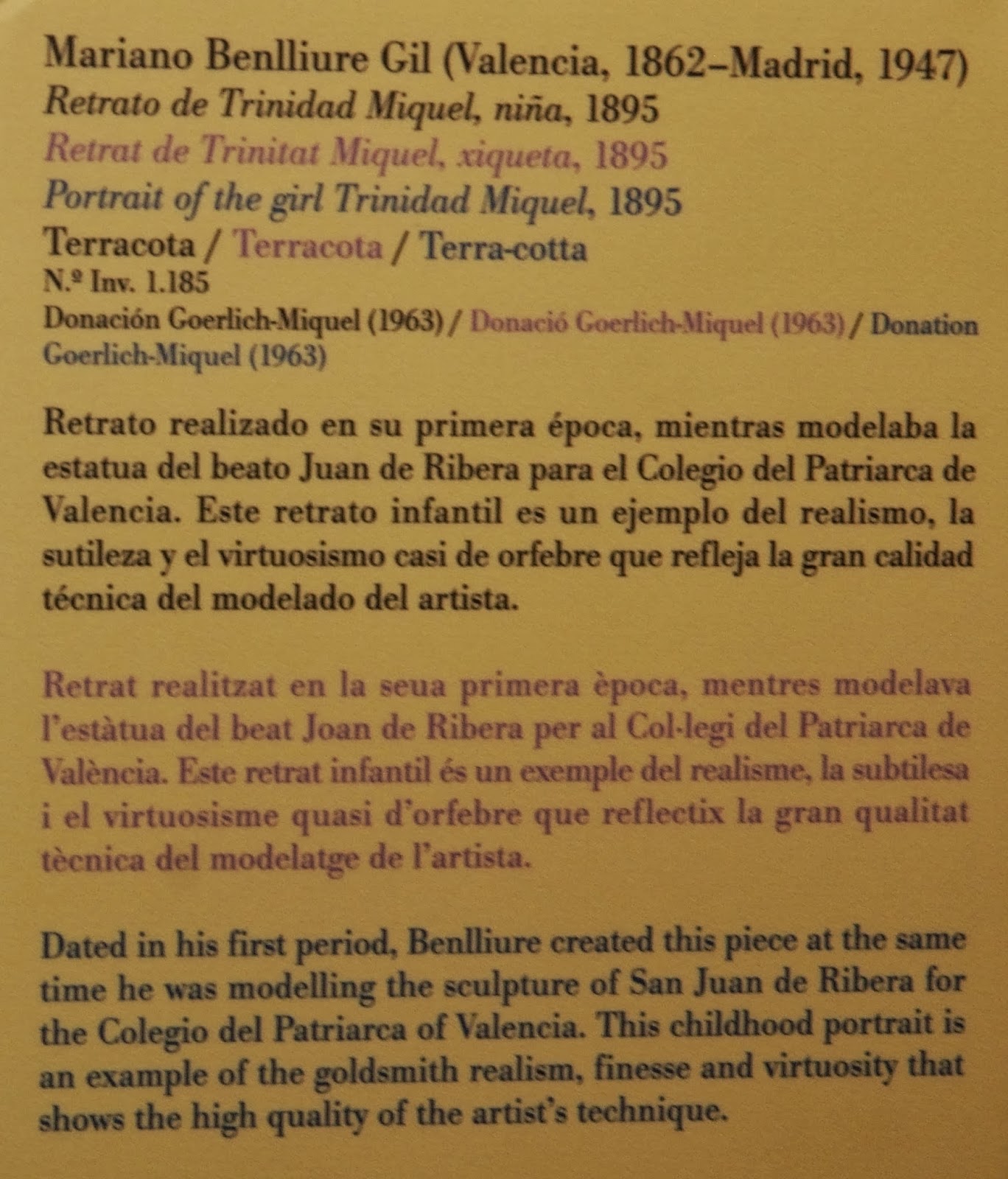 a maioria da sua obra está no São Pio V, que poderás ver quando aqui vieres. Assim como os moldes de quase todas elas. Ademais, no Museu de Crevillent, e no de Madrid. Existe muita obra deste artista genial...
