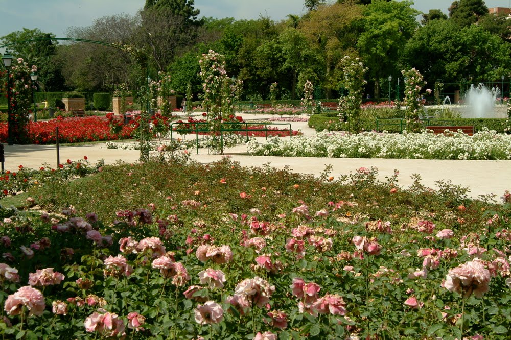 Esta rosaleda está ubicada en los Jardines del Real, en Valencia, también conocidos como de los Viveros.