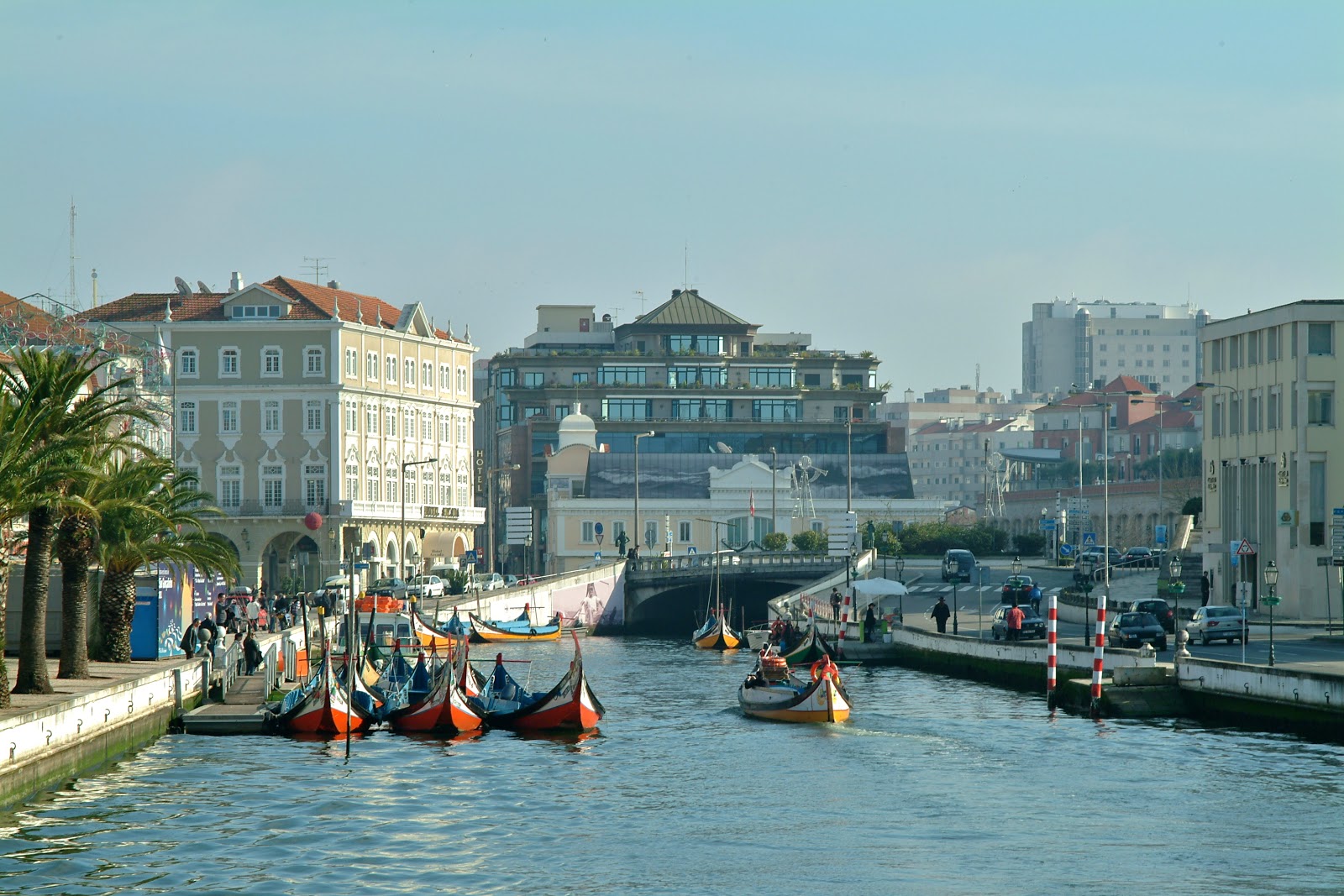 La Ría se abre en tres canales por la cuidad: el de las Pirámides que se extiende hacia el canal Central, el canal de San Roque, y el canal de los Santos Mártires (o del Paraíso). Por los que hemos navegado a bordo de uno de los “moliceiros”, un barco de extraña forma, con dibujos sugestivos y alegres colores: antes llevaban un gran mástil y vela. En algo se parecen a los barcos de nuestra Albufera, ambos son de fondo plano.